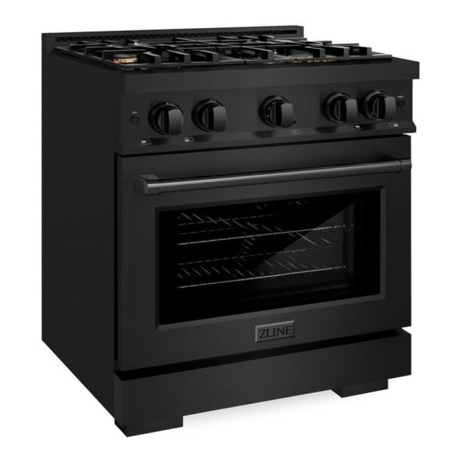 ZLINE 30" 4.2 cu. ft. Select Gas Range in Black Stainless Steel with 4 Brass Burners, HGRB-BR-30