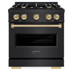 Luxury isn't meant to be desired - it's meant to be attainable. The ZLINE Autograph Edition 30 in. 4.2 cu. ft. Classic Gas Range with 4 Burner Cooktop and Convection Gas Oven in Black Stainless Steel and Champagne Bronze Accents (CGRBZ-30-CB) combines the elegance of a hand-finished porcelain gas cooktop with 4 Italian-made auto-reignition burners, a gas convection oven with an energy-efficient cooling fan to ensure quiet operation, a Landscape oven door window design, and stunning champagne bronze knobs and handle allowing you to master every meal. With a modern, timeless style and refined functionality, ZLINE Classic Gas Ranges are masterfully crafted to deliver an elevated culinary experience.