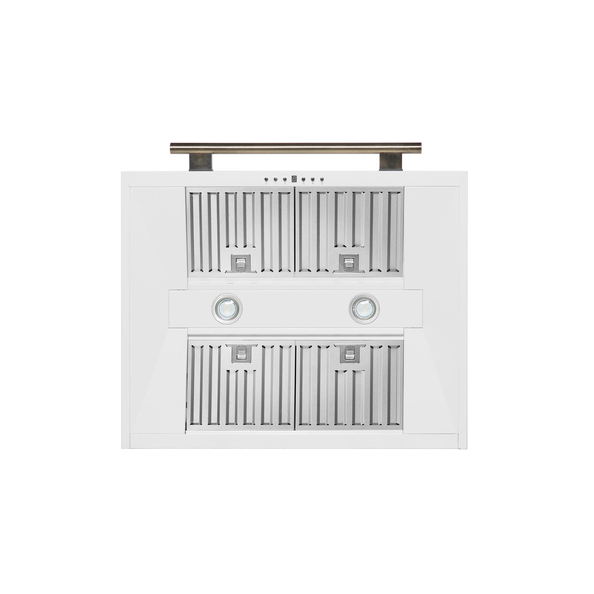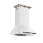 This 30 Inch Wall-Mounted Range Hood in white is designed for high-performance kitchen ventilation. With a powerful 600 CFM motor and four-speed fan control, it efficiently removes smoke, grease, and cooking odors. Choose between external venting or ductless recirculating installation to fit your kitchen layout. The vertical upward air discharge promotes strong airflow, while built-in features like a timer, auto shut-off, and washable charcoal filters make it easy to use and maintain. A chimney extension kit and decorative crown molding are included to deliver a seamless, built-in aesthetic. Operating at just 65 decibels, it offers quiet performance with built-in lighting for enhanced visibility while cooking.