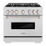 ZLINE 36" 5.2 cu. ft. Classic Dual Fuel Range with Gas Cooktop and Electric Convection Oven in Satin Stainless Steel with 6 Brass Burners, CDRS-BR-36