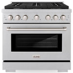 ZLINE 36" 5.2 cu. ft. Paramount Dual Fuel Range with Gas Cooktop and Electric Convection Oven in Satin Stainless Steel with 6 Brass Burners, SDRS-BR-36